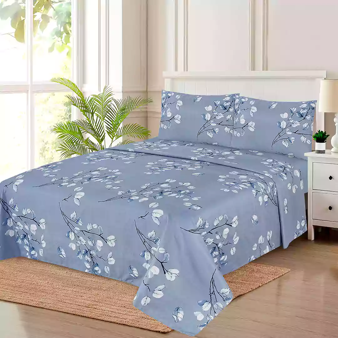 Bring timeless elegance to your bedroom with our Grey & White Floral Printed 4 Pcs Bedsheet Set. Crafted from premium-quality, soft, and breathable fabric, this set offers a perfect blend of comfort and style with its graceful floral design.