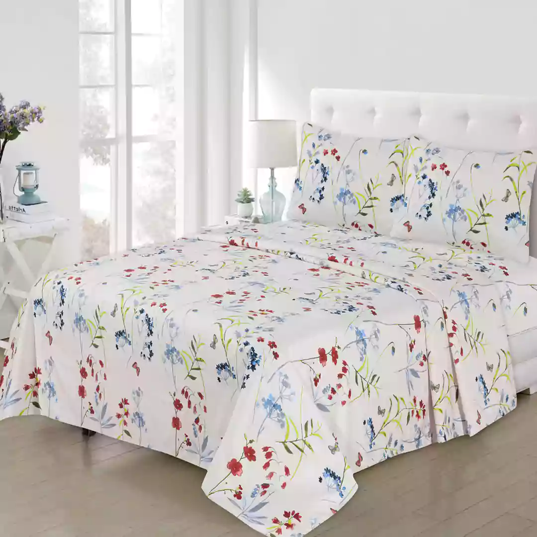 Brighten up your bedroom with our Multi-Color Wildflower Printed 4 Pcs Bedsheet Set. Crafted from soft, breathable, and durable fabric, this set combines vibrant floral patterns with lasting comfort and style.
