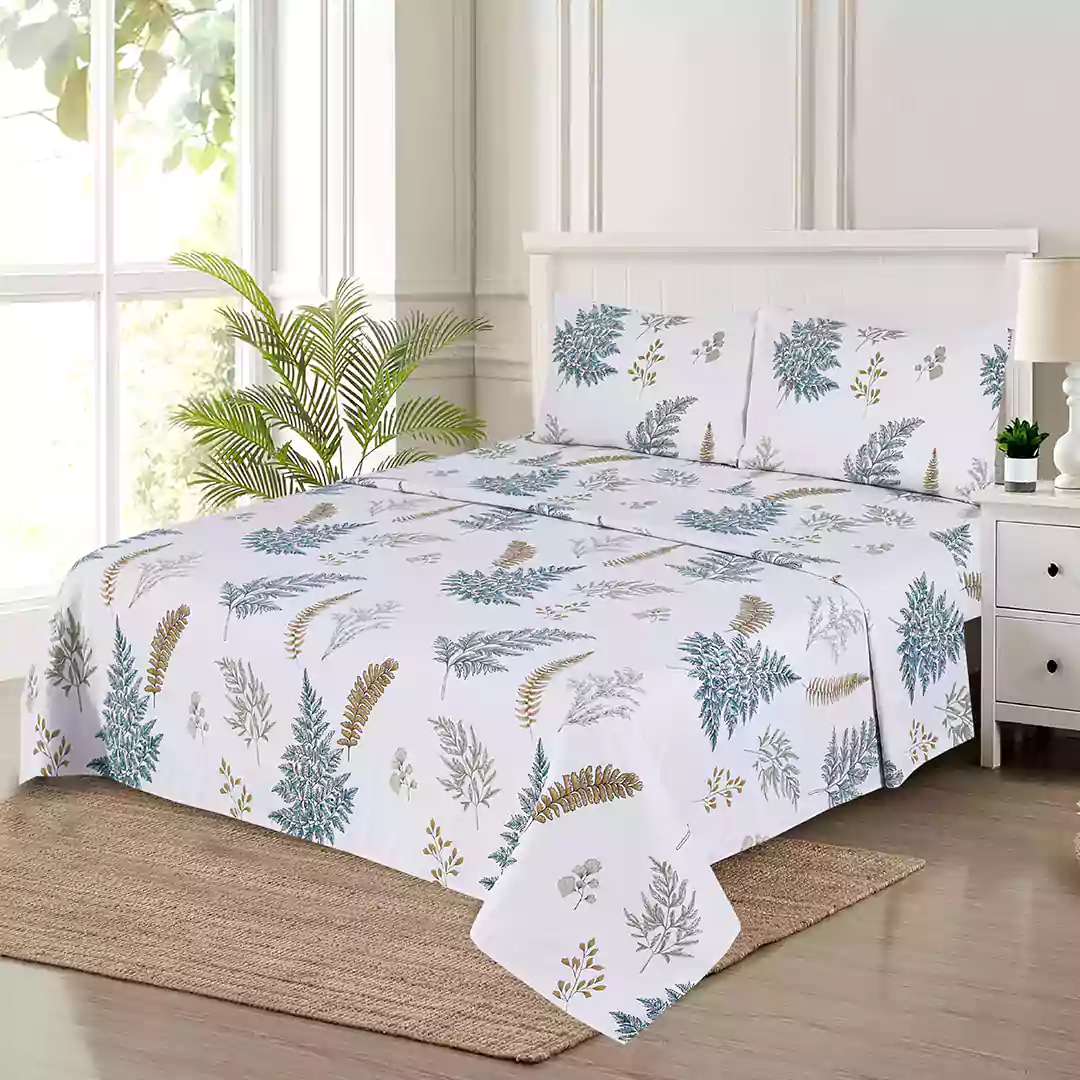 Bring a calm and refreshing vibe to your bedroom with our White Nature Printed 4 Pcs Bedsheet Set. Made from soft, breathable, and durable fabric, this set offers both comfort and a serene natural look that enhances any space.