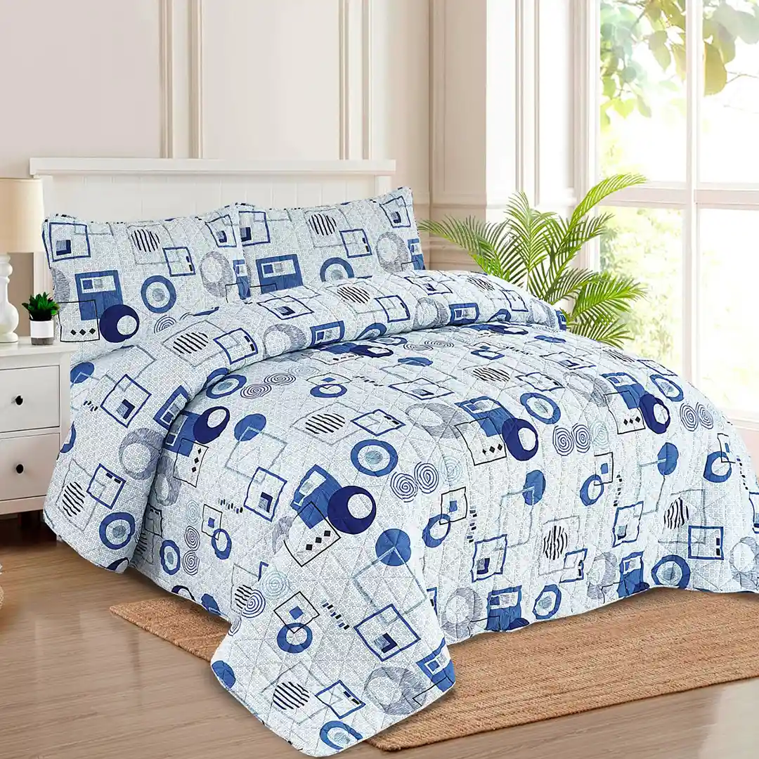 Refresh your bedroom décor with the artistic elegance of our 7 Pcs Printed Abstract Blue & White Comforter Set. Featuring a captivating mix of blue and white tones in an abstract design, this set adds a modern yet serene touch to your space. Crafted for both comfort and style, it offers a perfect balance of softness, warmth, and sophistication — transforming your bedroom into a chic, relaxing retreat.