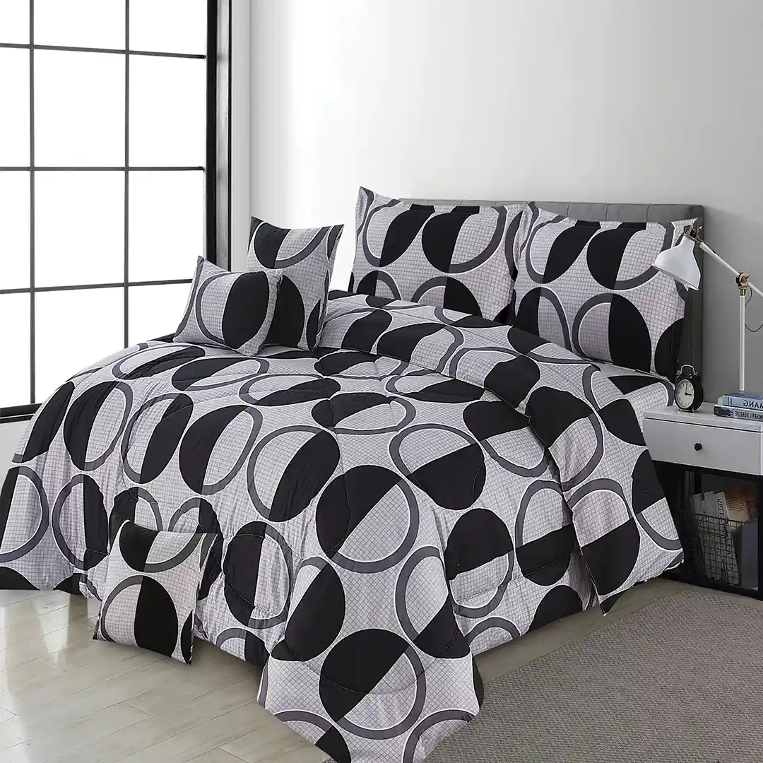 Add a modern and elegant touch to your bedroom with our Black & White Circles Printed 7 Pcs Comforter Set. The bold circular design in classic monochrome tones brings a stylish contrast that complements any décor, combining comfort with contemporary appeal.