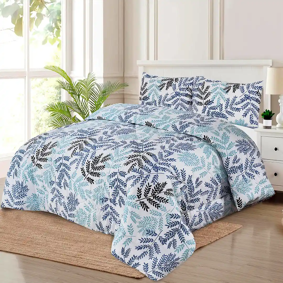 Add a bold yet refreshing touch to your bedroom with our 7 Pcs Printed Blue & Black Leaf Comforter Set. The striking combination of blue and black hues paired with a contemporary leaf pattern brings a perfect blend of modern style and natural elegance to your space. Crafted for comfort and sophistication, this set transforms your room into a stylish, cozy retreat designed for relaxation and refined taste.