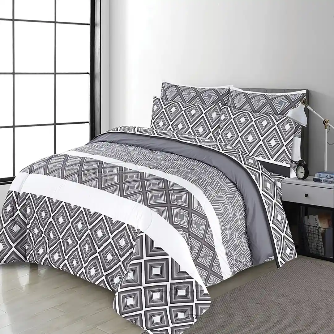 Bring modern sophistication to your bedroom with our 7 Pcs Printed Contemporary Black & White Comforter Set. The timeless contrast of black and white tones paired with a sleek contemporary print adds a bold and elegant touch to your décor. Designed for both comfort and style, this set offers the perfect blend of softness, warmth, and minimalistic charm — creating a refined and relaxing atmosphere.