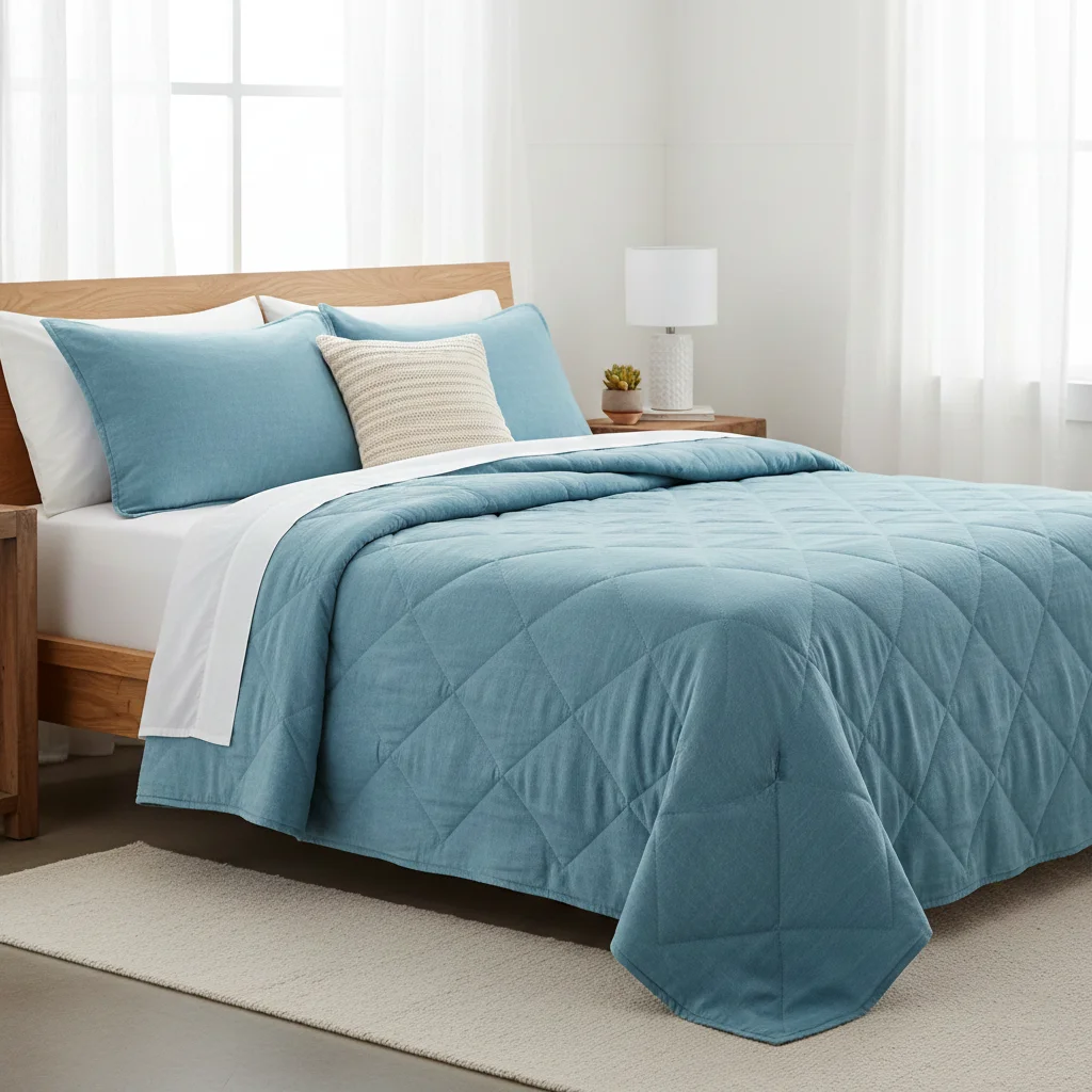 Aqua Blue Plain Quilt Bedding Set adds a refreshing, calming touch to your bedroom with its soft aqua blue shade and smooth plain finish. Crafted from premium cotton or microfiber fabric and filled with lightweight padding, it provides cozy comfort perfect for year-round use.