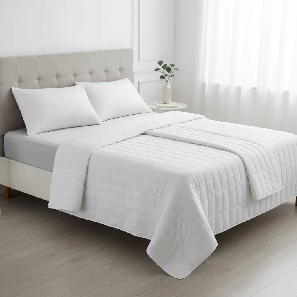 Clean Look Plain Quilt Bedding Set brings a fresh, minimalistic charm to your bedroom with its smooth, solid-color finish. Crafted from premium cotton or microfiber fabric and filled with lightweight padding, it provides soft, breathable comfort ideal for year-round use.