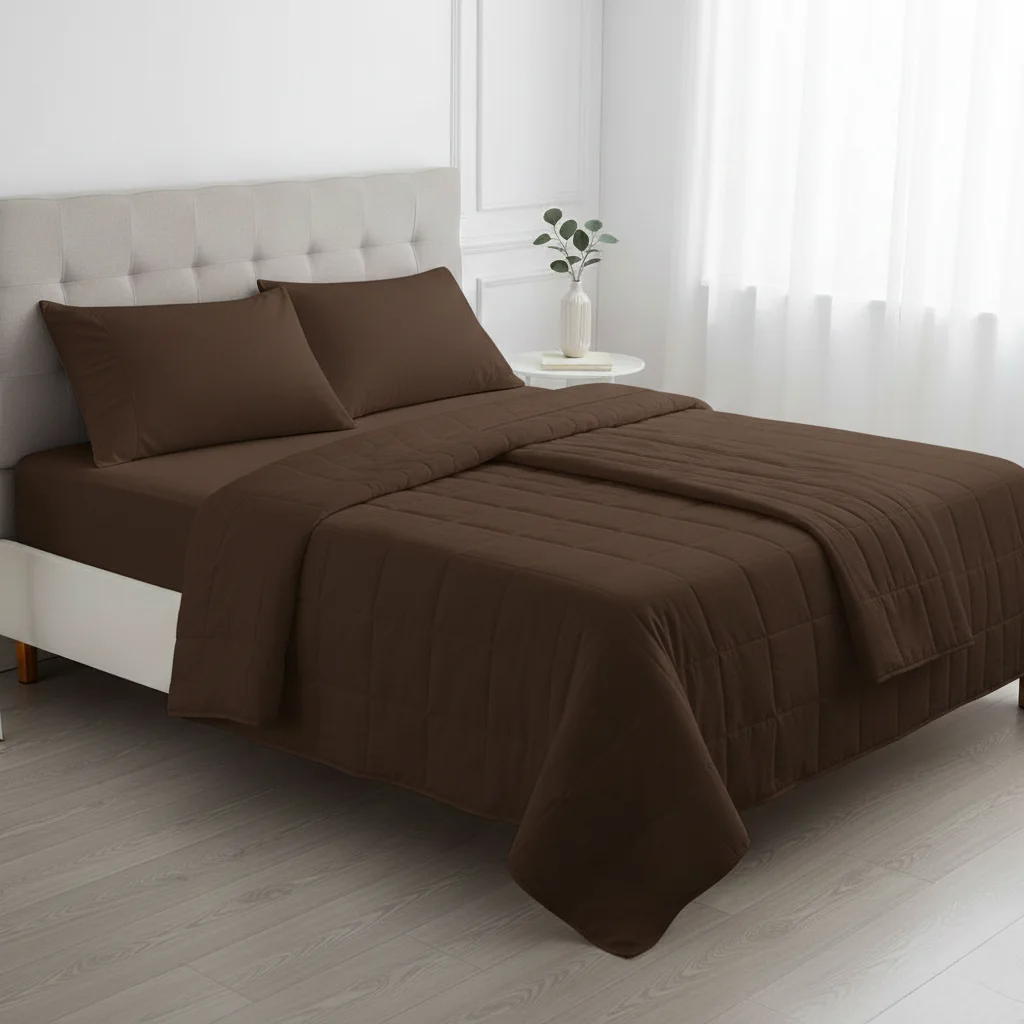 Dark Brown Plain Quilt Set brings a rich, warm touch to your bedroom with its deep brown hue and clean, minimal plain design. Crafted from premium cotton or microfiber fabric and filled with lightweight padding, it provides breathable, cozy comfort ideal for year-round use.