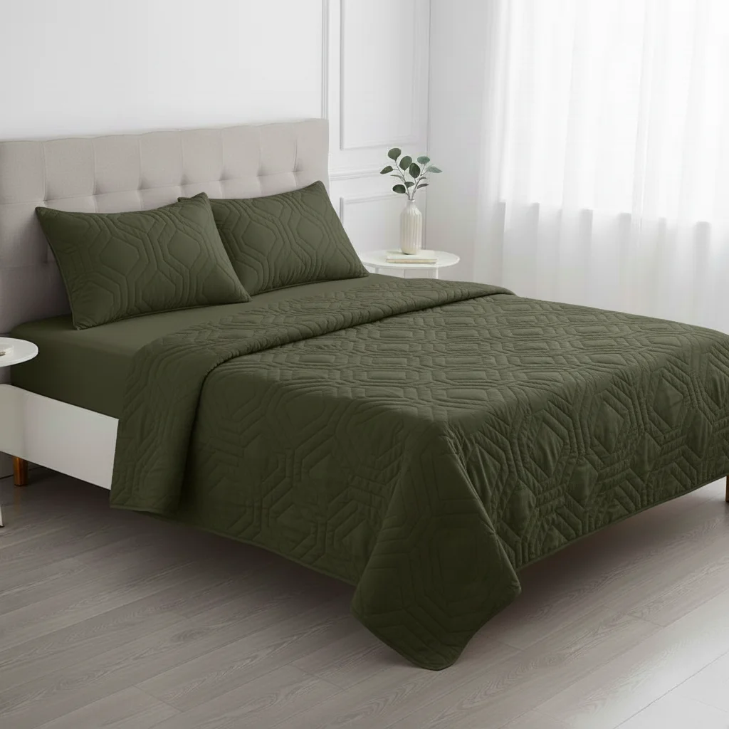 Deep Olive Plain Quilt Set brings a rich, earthy touch to your bedroom with its deep olive hue and clean, minimal plain design. Crafted from premium cotton or microfiber fabric and filled with lightweight padding, it provides breathable, cozy comfort perfect for year-round use.