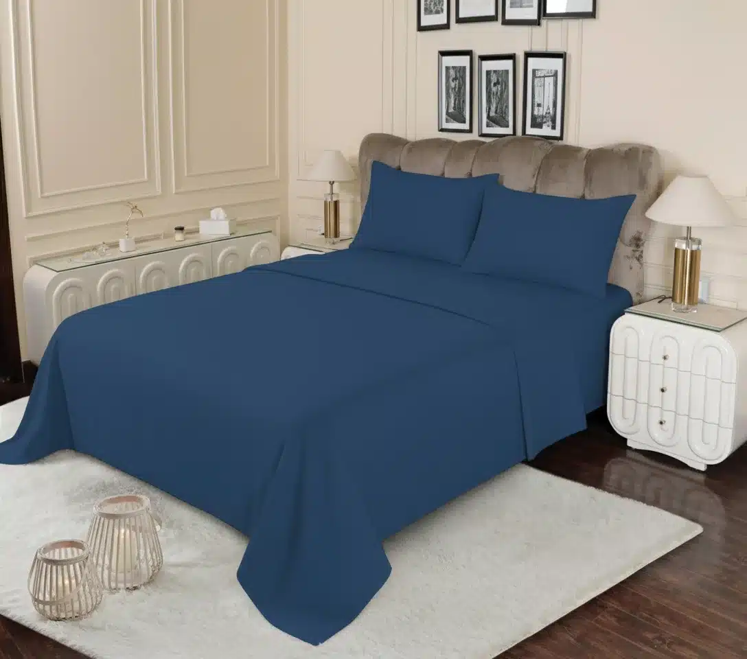 Elegant Navy Blue Plain Bedsheet brings a sophisticated, modern touch to your bedroom with its deep navy blue shade and clean, plain design. Crafted from premium cotton-blend or microfiber fabric, this bedsheet offers a soft, breathable, and wrinkle-resistant finish—ensuring comfortable, all-season sleep with a sleek, refined look.