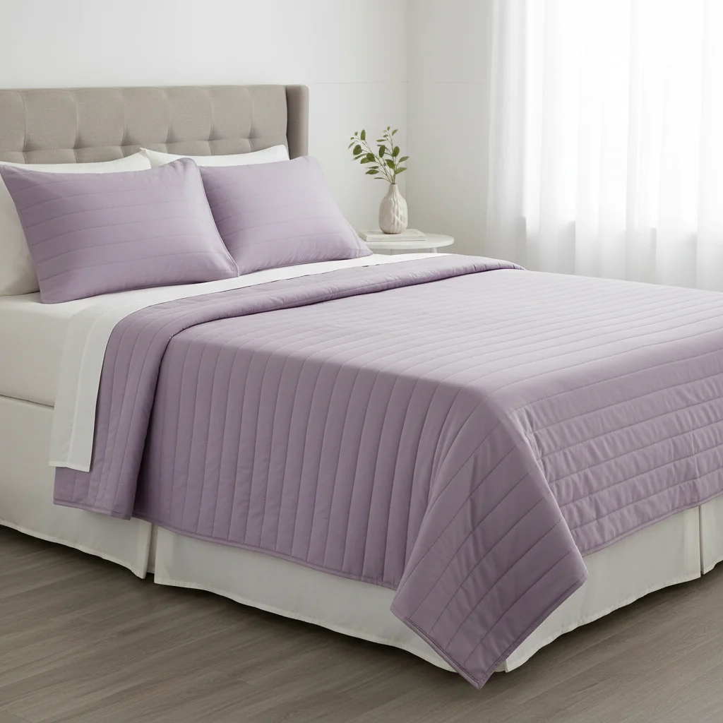 Lavender Plain Quilt Horizontal Stitch brings a soft, calming touch to your bedroom with its gentle lavender shade and neat horizontal-stitched texture. Crafted from premium cotton or microfiber fabric and filled with lightweight padding, it offers breathable, cozy comfort perfect for year-round use.