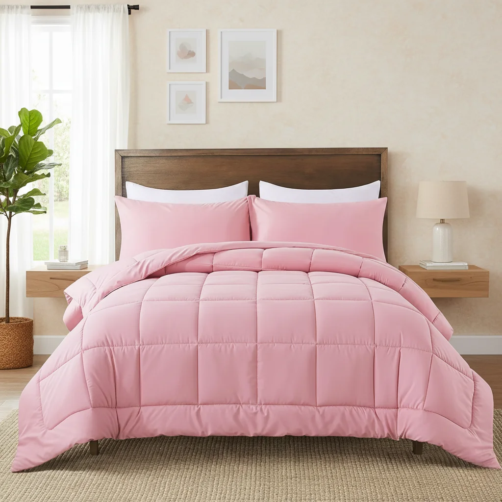 Light Pink Plain Comforter Set brings a soft, modern elegance to your bedroom with its gentle light pink shade and clean plain design. Crafted from premium microfiber or cotton-blend fabric and filled with soft, plush padding, this comforter set offers warm, breathable, and lightweight comfort—perfect for cozy sleep throughout all seasons.