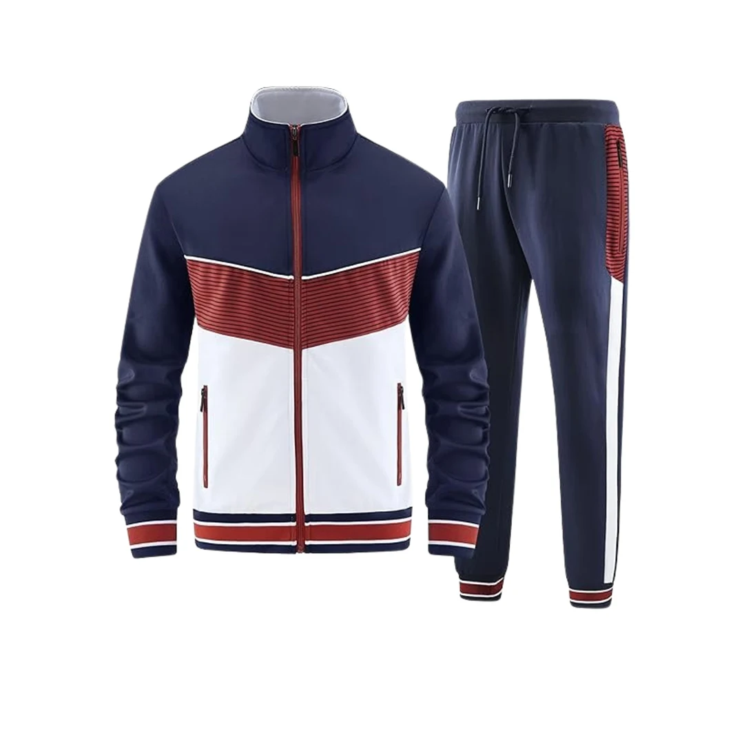 Men’s Zip Tracksuit Set (Dark Blue, White, Red)