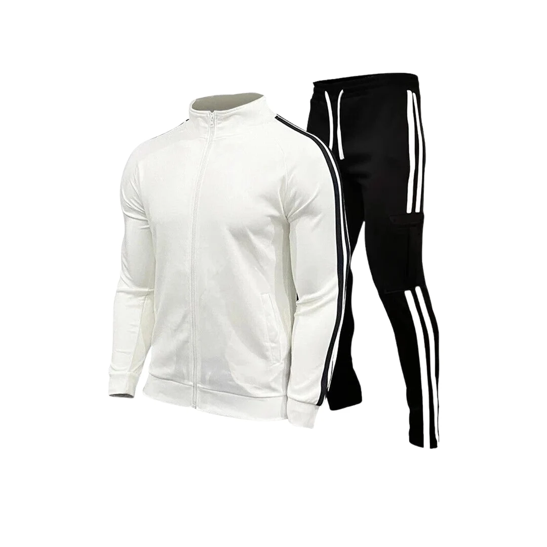 Men’s Zip-Up Sweat Tracksuit (White, Black)