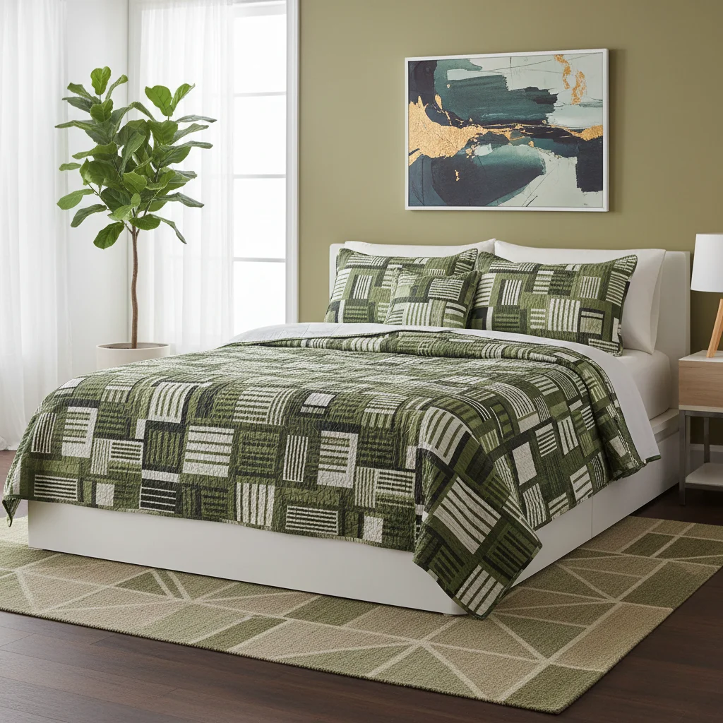 The Modern Geometric Printed Quilt Design brings a clean, contemporary touch to your bedroom with its sharp geometric patterns and stylish layout. Crafted from soft cotton or microfiber fabric with lightweight filling, it ensures cozy, breathable comfort all year long.