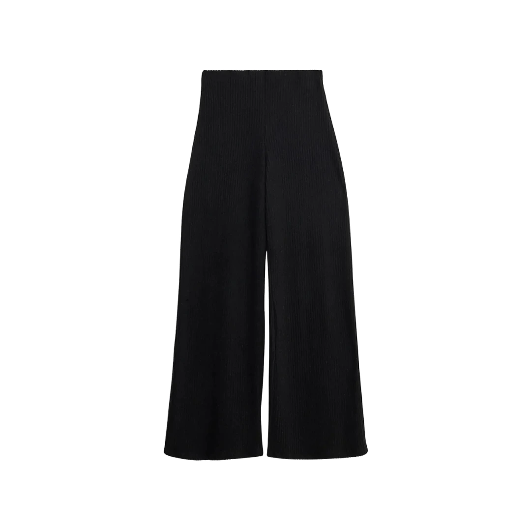 Embrace comfort and style with our Women’s Black Ribbed Knit Wide Leg Trousers. Crafted from soft, stretchable ribbed knit fabric, these trousers feature a relaxed wide-leg design that moves with ease while maintaining a polished look. Perfect for lounging, casual wear, or travel.