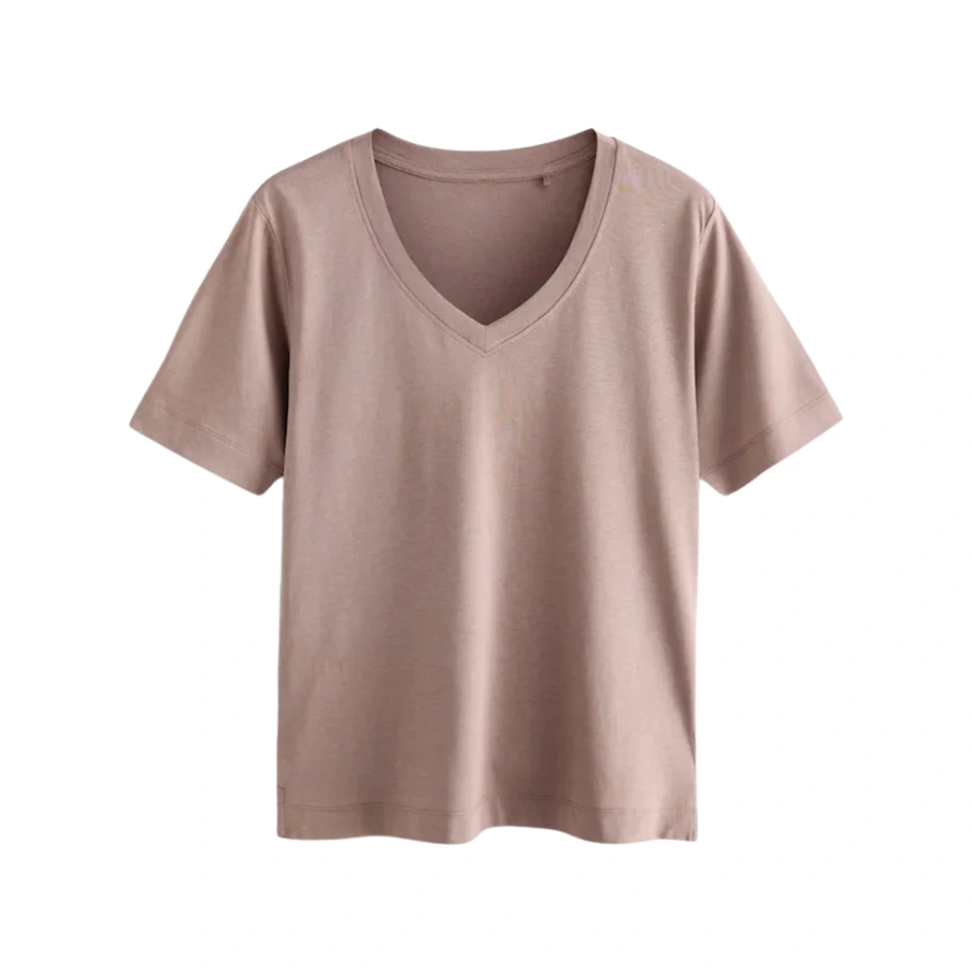 Our Women’s (Muted Brown) Cotton V-Neck T-Shirt is soft, comfy, and easy to wear. Designed with a relaxed fit, it feels light and smooth on the skin — perfect for everyday style or casual outings.