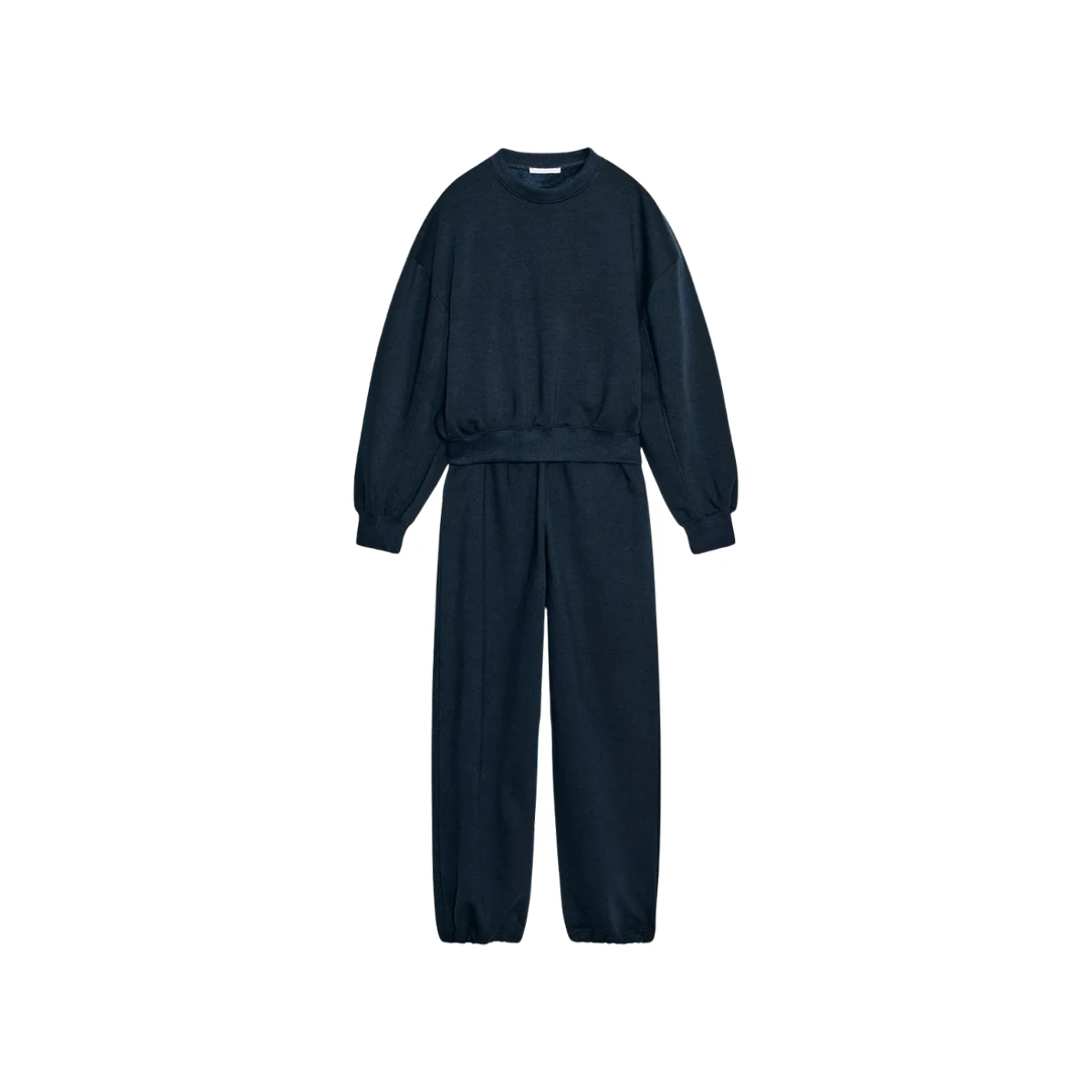👉 Click Request a Quote to customize Women’s Dark Navy Blue Relaxed Fit Sweatshirt & Joggers Set in your desired fabric, color, and size.