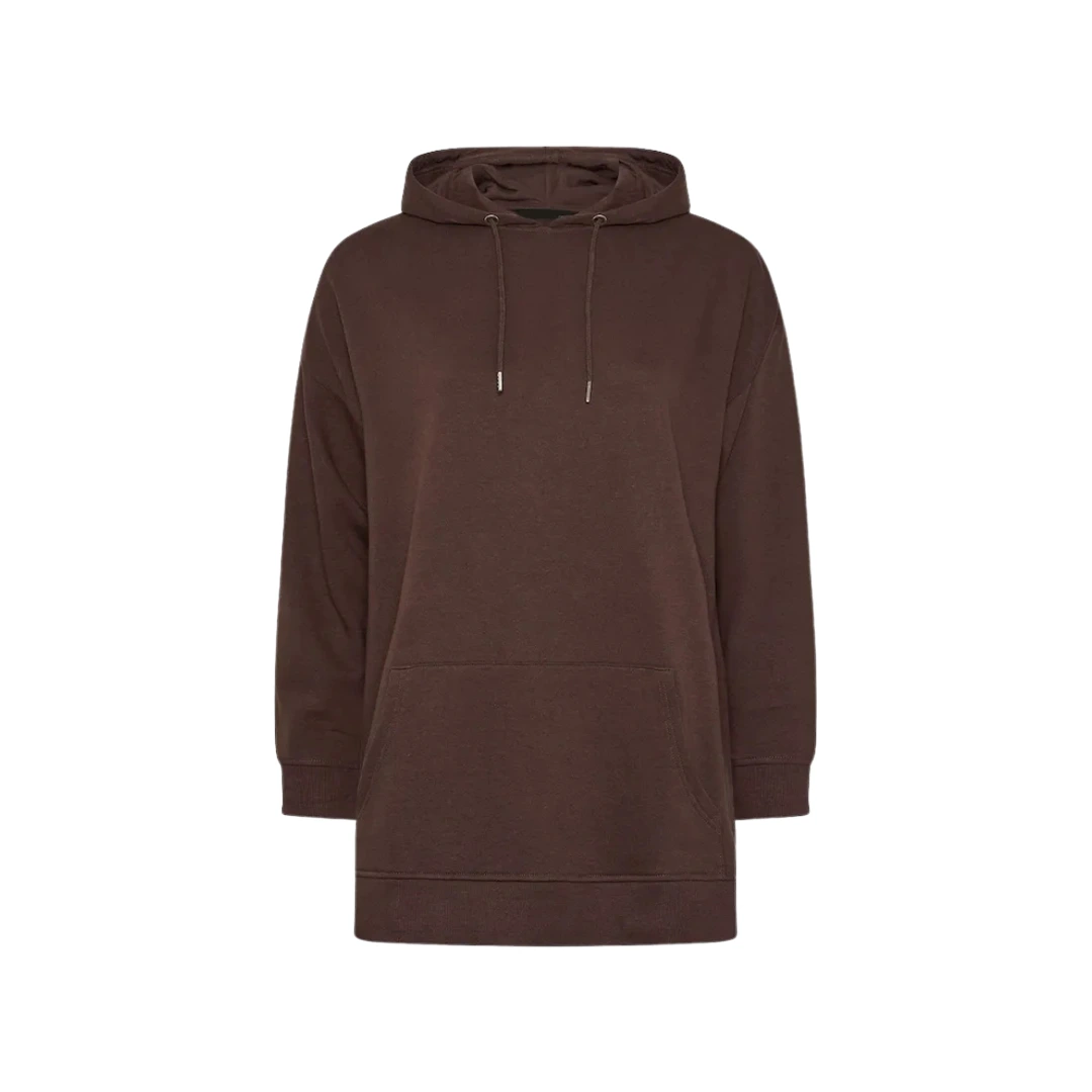 - Longline length for hoodie-dress versatility