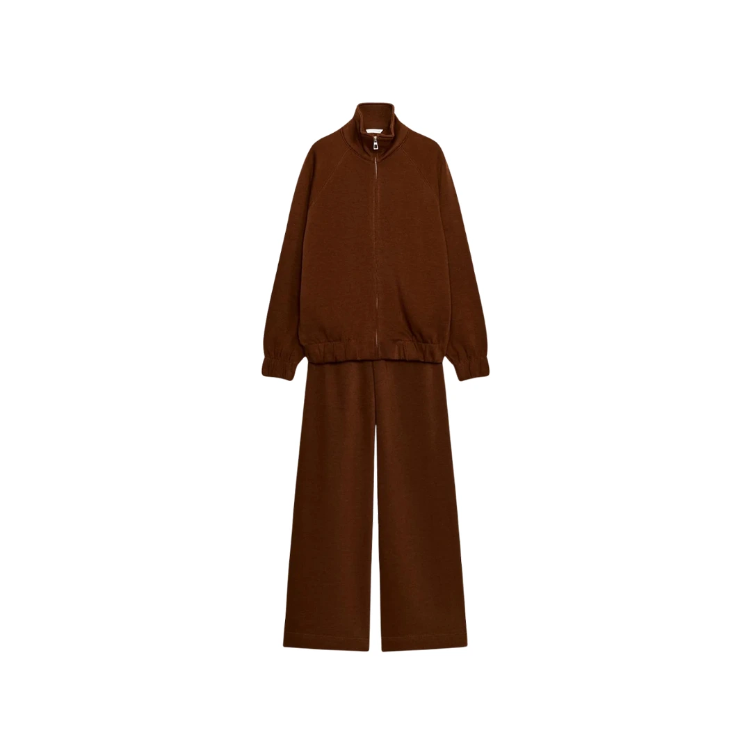 👉 Click Request a Quote to customize Women’s Rich Brown Wide Leg Tracksuit Set in your preferred fabric, color, and size.