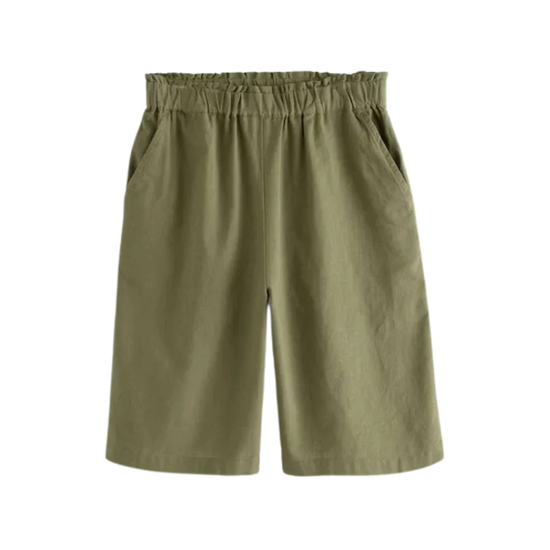 Our Women’s Olive Green Cotton Bermuda Shorts blend casual sophistication with everyday comfort, offering a perfect balance of style and functionality. Designed with a flattering mid-length cut and a tailored fit, these shorts create a sleek, feminine silhouette that transitions effortlessly from day to evening wear. Crafted from 100% premium cotton, they provide exceptional softness, breathability, and durability for all-day comfort.