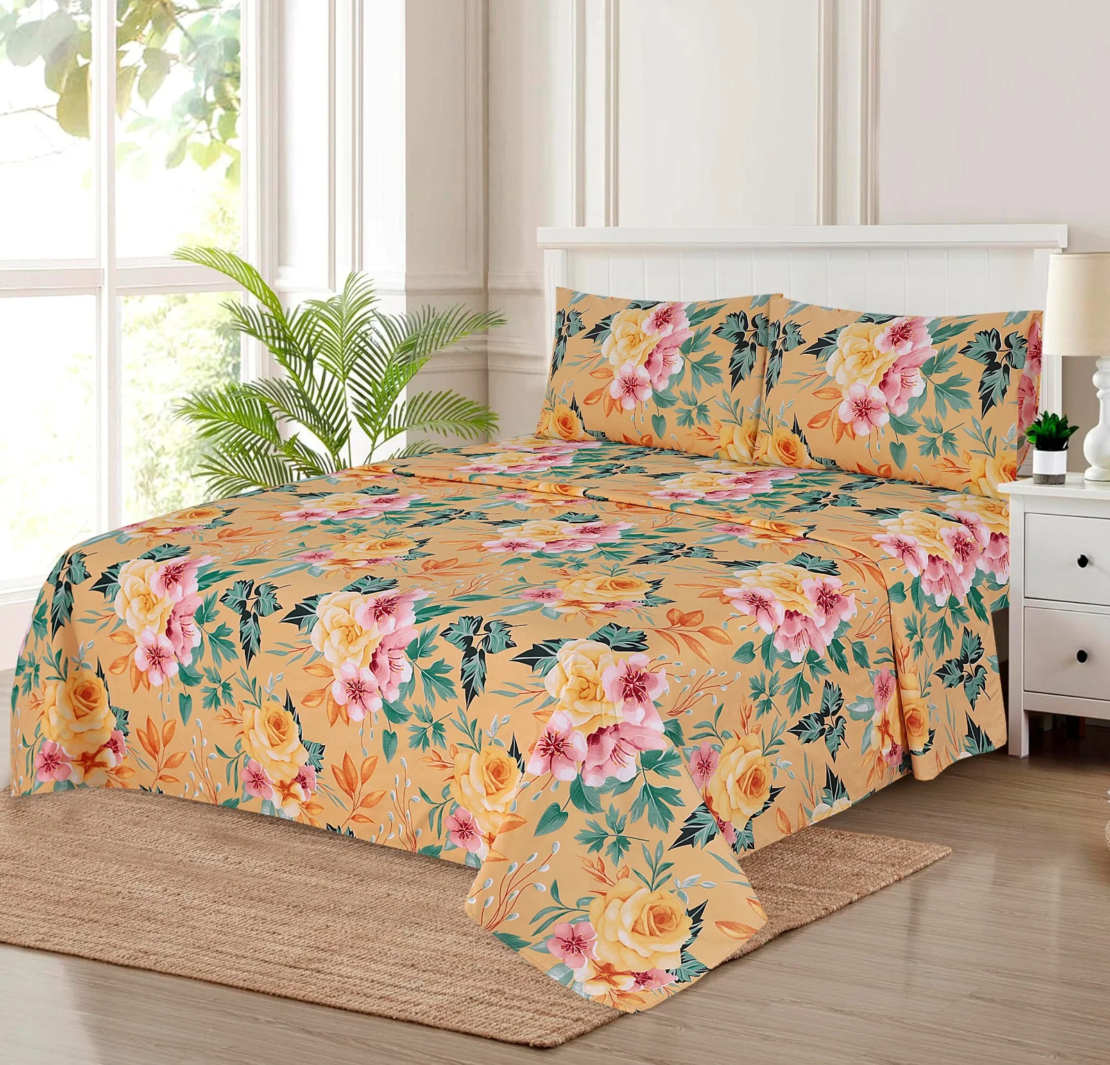 Yellow Base Floral Fitted Sheet brings a bright, refreshing charm to your bedroom with its warm yellow base and soft floral pattern. Crafted from premium cotton-blend or microfiber fabric, this fitted sheet offers a smooth, breathable, and wrinkle-resistant finish—ensuring comfortable, all-season sleep with a secure, stay-in-place fit.